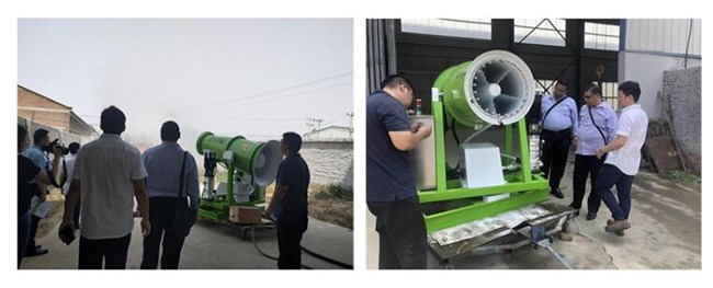 風(fēng)送式除塵噴霧機是一種經(jīng)過(guò)特殊設計,能夠實(shí)現將均勻連續混合物(水、空氣、添加劑)噴射超遠距離的專(zhuān)利產(chǎn)品,成霧水滴尺寸均可控,噴射有指向性。