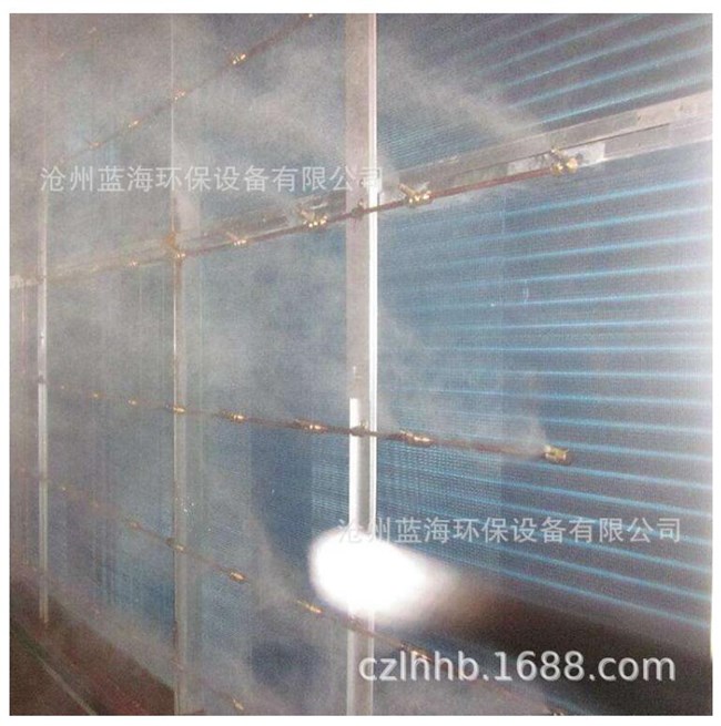 利用超高壓泵將水加壓至40公斤以上,經(jīng)過(guò)高壓管路至高壓噴嘴霧化,霧滴的直徑僅為10-50um這些微小的霧化顆粒能長(cháng)時(shí)間漂浮在空氣中漂浮在空間,由空氣分解,它們具有較強的表面活性和吸附能力對懸浮在空氣中的粉塵—— 別是直徑在5微米以下的可吸入顆粒進(jìn)行有效的吸附,使粉塵受重力作用而沉降,從而達到抑塵作用。