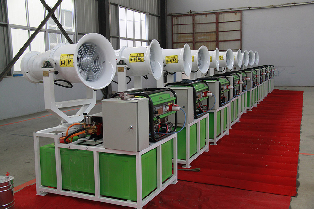 風(fēng)送式除塵噴霧機是一種經(jīng)過(guò)特殊設計,能夠實(shí)現將均勻連續混合物(水、空氣、添加劑)噴射超遠距離的專(zhuān)利產(chǎn)品,成霧水滴尺寸均可控,噴射有指向性。