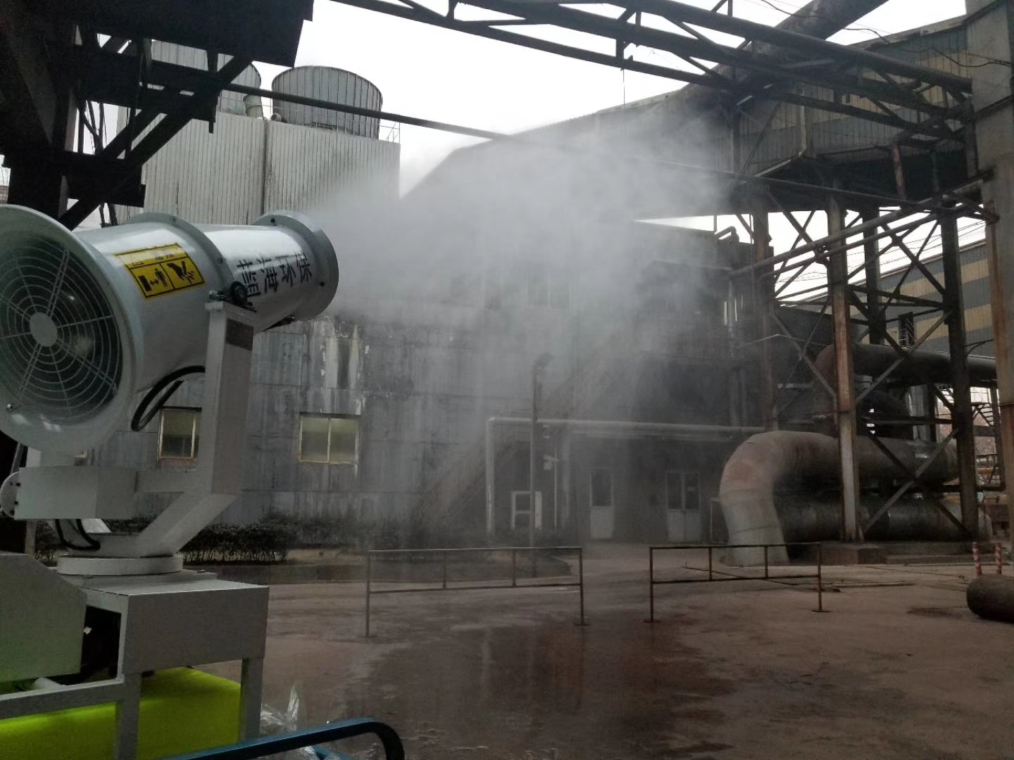 霧炮機的霧化原理是利用來(lái)自高壓離心風(fēng)機產(chǎn)生的高速氣流,然后由出風(fēng)口的氣流把霧化的霧滴吹向遠處。除了風(fēng)力方面的成分以外,液體的霧化程度與其表面張力及吸附性相關(guān)。