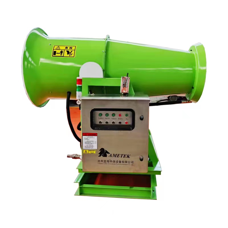 霧炮機能夠依據用戶(hù)現場(chǎng)的實(shí)踐污染情況以及粉塵量的多少,量身規劃遠射程噴霧計劃,以抵達抱負的粉塵管理作用。霧炮機噴霧作用好 除塵作用與噴霧顆粒直徑有親近關(guān)系,藍海公司 了噴霧炮的魂靈部件——噴嘴,愈加的將水霧化成適宜的降塵水霧顆粒,降塵速度快,噴灑愈加均勻。霧化功用優(yōu)越霧炮機是依據風(fēng)送原理,運用進(jìn)口高壓泵、微細霧化噴嘴將水霧化,再運用風(fēng)機風(fēng)量和風(fēng)壓將霧化后的水霧送到較遠間隔,使得水霧抵達較遠間隔一同能夠掩蓋大面積,水霧與粉塵凝集后下降,然后抵達降塵意圖。 現在在許多露天堆料場(chǎng)、作業(yè)現場(chǎng),作業(yè)粉塵和部分揚塵是粉塵管理的難題。許多企業(yè)曩昔選用水噴淋的辦法管理,但掩蓋面積小、用水量大等問(wèn)題使水噴淋的管理作用不抱負。霧炮機機械功率小、能耗低 在對噴嘴多年的研討根底上對噴霧炮進(jìn)行了重復的實(shí)驗研討,選用了風(fēng)機變頻發(fā)動(dòng),PLC操控,液壓滾動(dòng)。蕞終在平等功率下噴霧炮比較同職業(yè)其他噴霧設備噴的射程遠、耗能低,功用安穩。