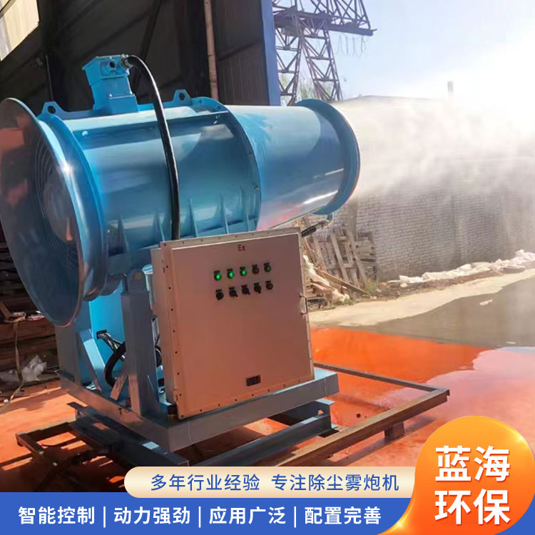 降塵炮系統是一種經(jīng)過(guò)特殊設計,能夠實(shí)現將均勻連續混合物(水,空氣,添加劑)噴射超遠距離的專(zhuān)利產(chǎn)品,成霧水滴尺寸均勻可控,噴射流指向性。