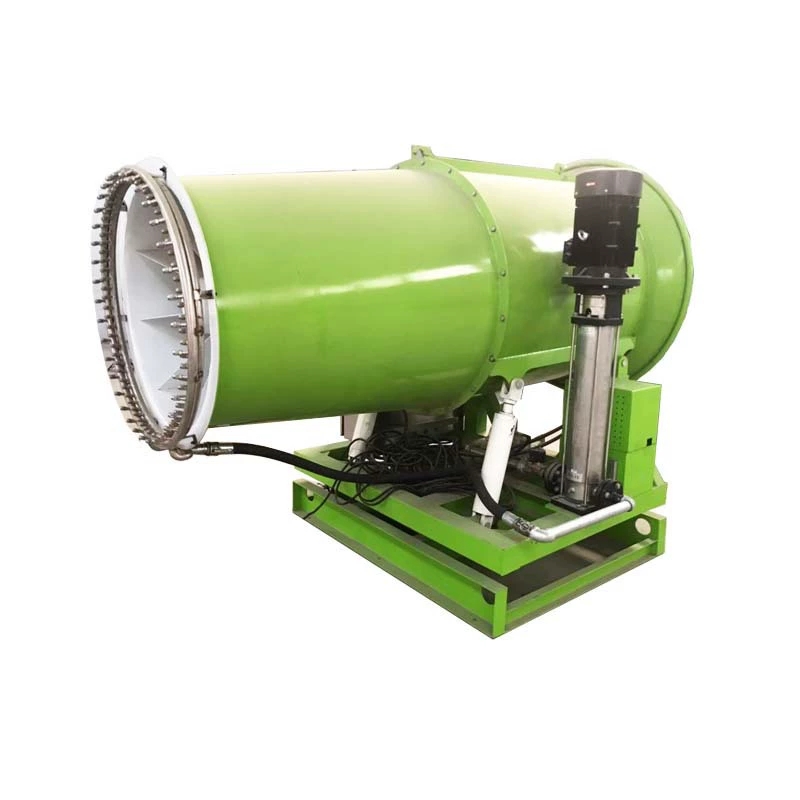 降塵炮系統是一種經(jīng)過(guò)特殊設計,能夠實(shí)現將均勻連續混合物(水,空氣,添加劑)噴射超遠距離的專(zhuān)利產(chǎn)品,成霧水滴尺寸均勻可控,噴射流指向性。